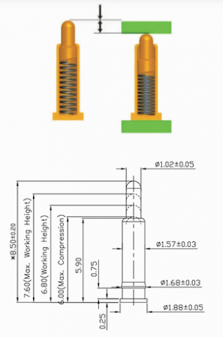 Qhov yooj yim ua hauj lwm qhov siab ntawm Pogo Pin (lub caij nplooj ntoos hlav-loaded connector):