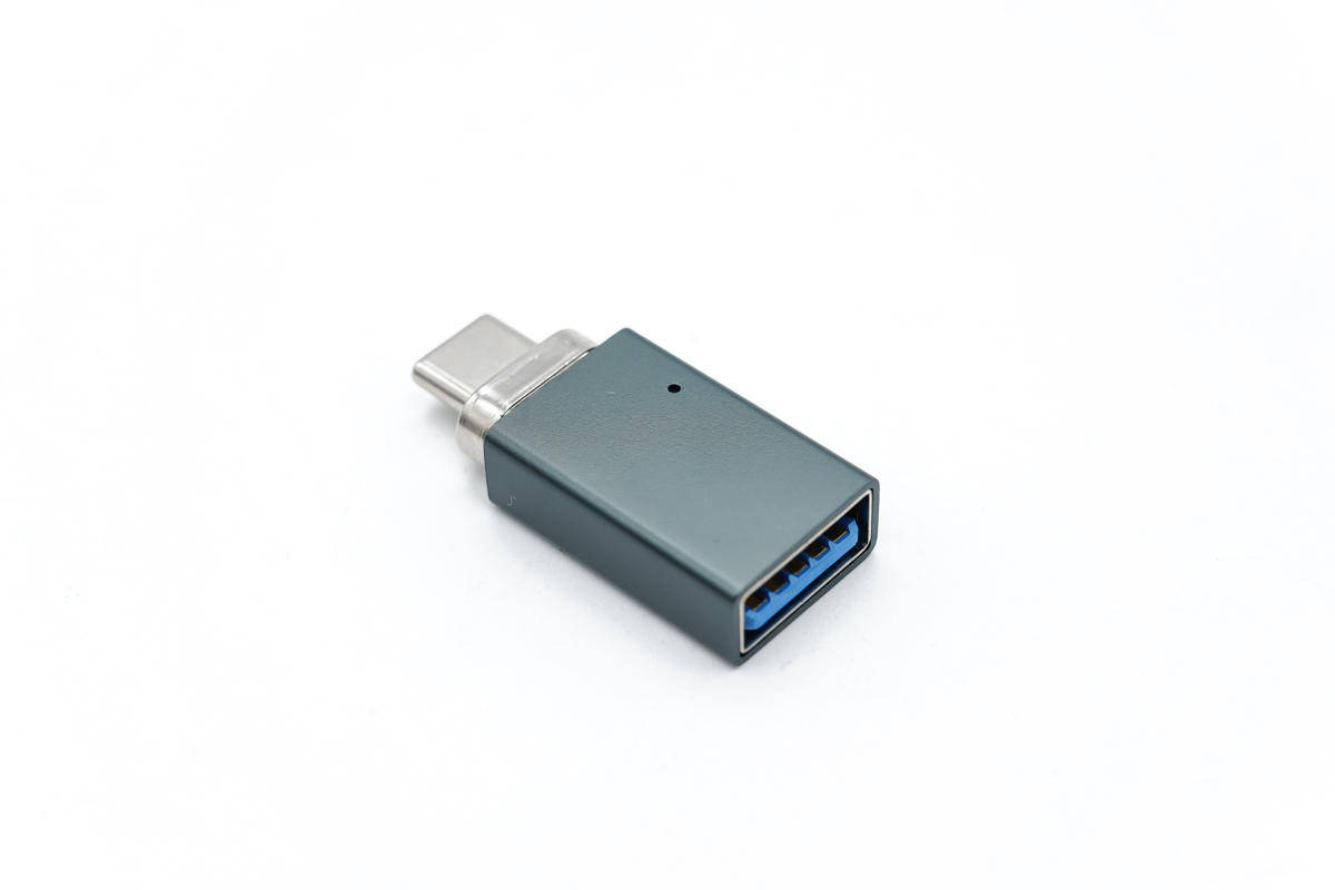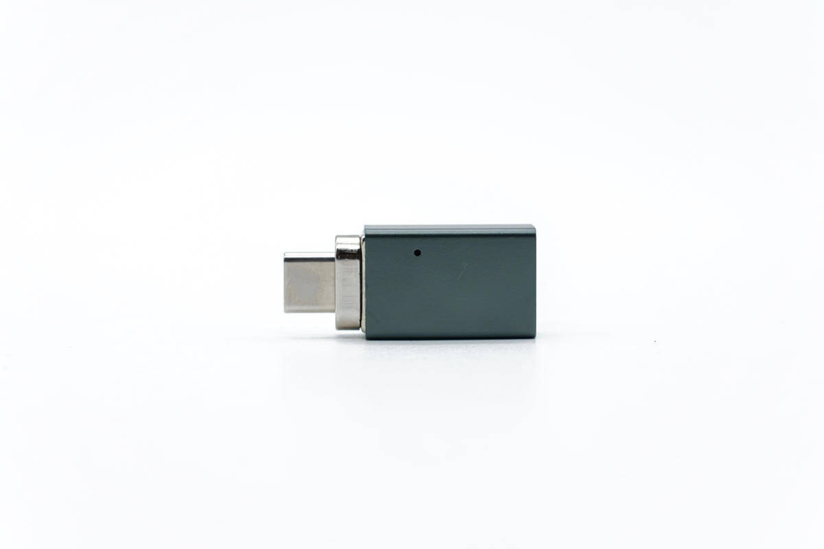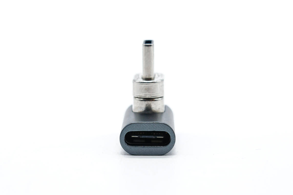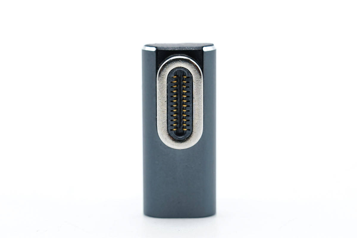 Cov tswv yim kawg ntawm lub adapter txais yuav USB-C poj niam chaw nres nkoj rau kev txuas cables.