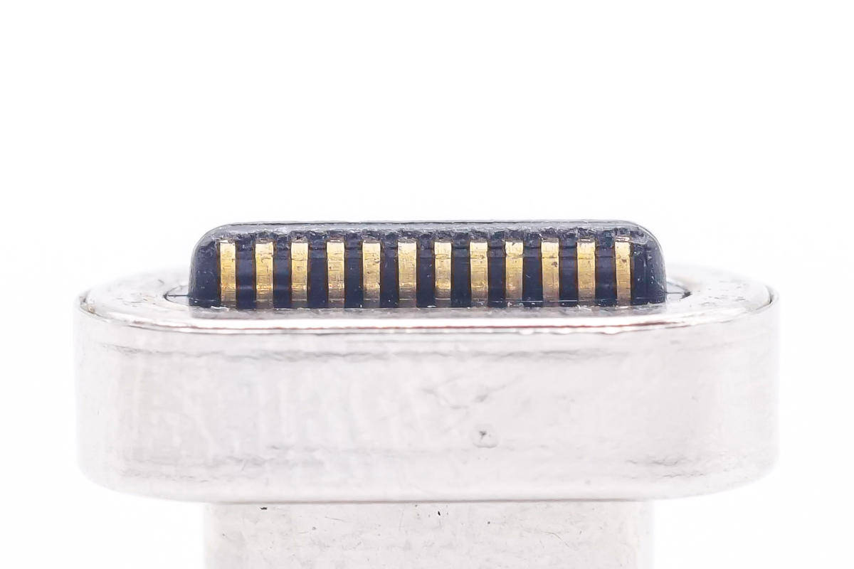Cov ntsiab lus sab hauv ntawm USB-C txiv neej kawg yog tsim los rau tag nrho cov pins.
